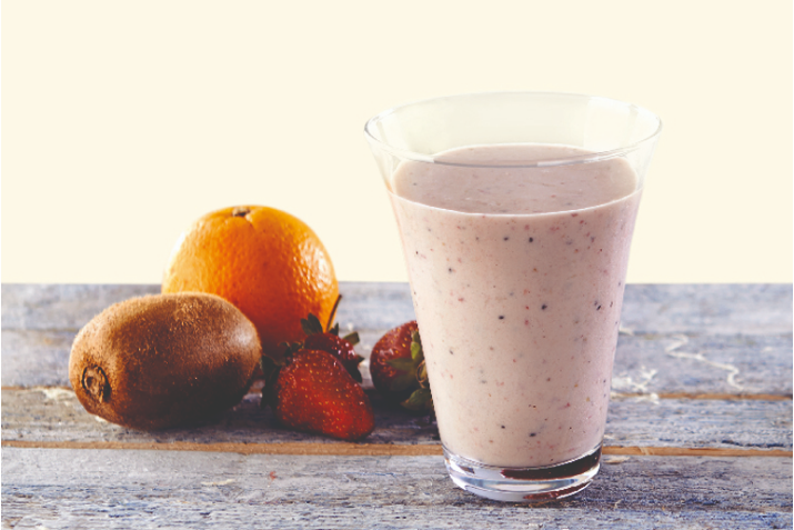Portakalı iri parçalar halinde dilimleyin. Kiviyi doğrayın. Tüm malzemeleri karıştırıcıya (blender) ekleyin ve istediğiniz kıvama gelinceye kadar karıştırın. Hemen servis edin. Servis bardağınızı kivi dilimleri ile süsleyebilirsiniz.